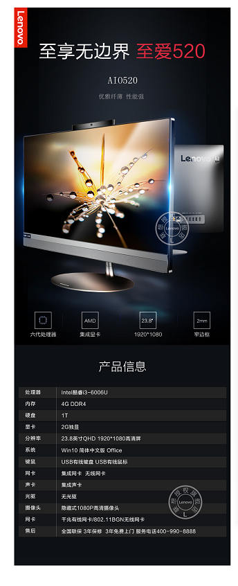 - 商品名稱:聯(lián)想(Lenovo) 一體機(jī)電腦 AIO 520-24 23.8英寸家用辦公臺式電腦:i3/8G/1T+128G 集顯銀