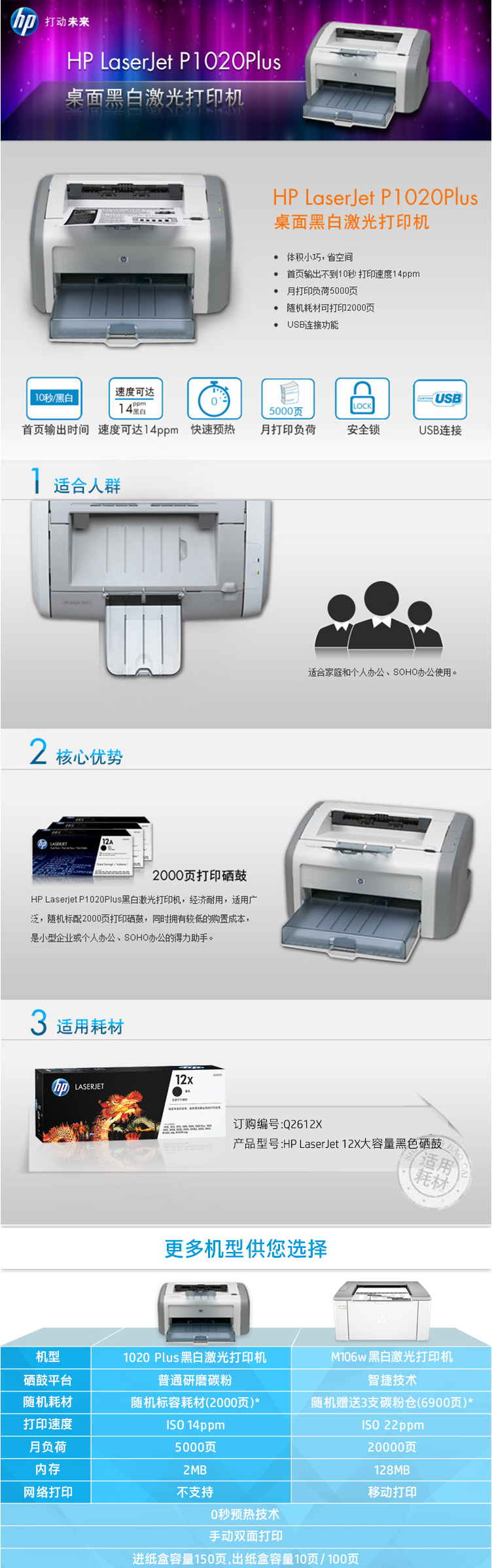 - 商品名稱:惠普(HP)LaserJet 1020 Plus 黑白激光打印機(jī)